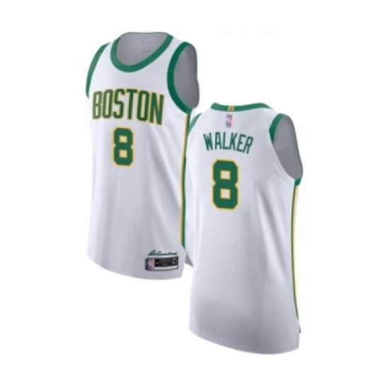 >Men's Boston Celtics #8 Kemba Walker Authentic White Basketball Jersey - City Edition