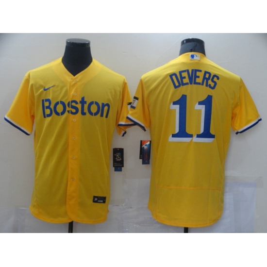 Men's Boston Red Sox #11 Rafael Devers Nike Gold-Light Blue 2021 Jersey