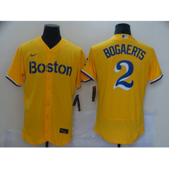 >Men's Boston Red Sox #2 Xander Bogaerts Nike Gold-Light Blue Elite 2021 Jersey