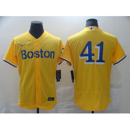 Men's Boston Red Sox #41 Chris Sale Nike Gold-Light Blue 2021 City Connect Replica Jersey