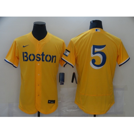 Men's Boston Red Sox #5 Enrique Hernandez Nike Gold-Light Blue 2021 City Connect Jersey