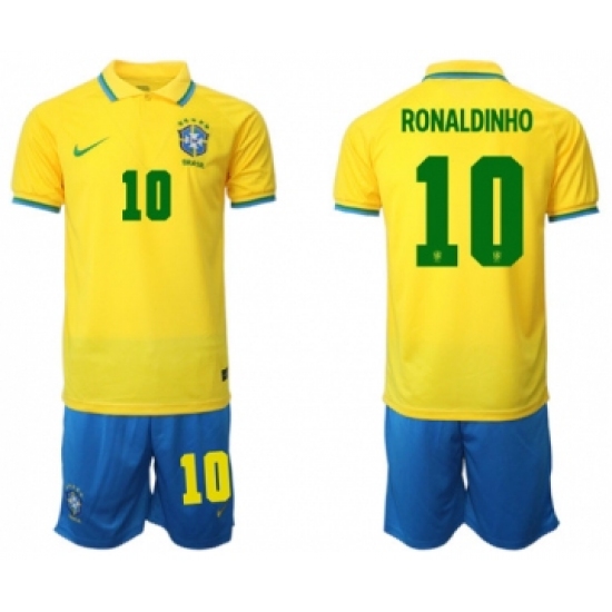 Men's Brazil #10 Ronaldinho Yellow Home Soccer Jersey Suit