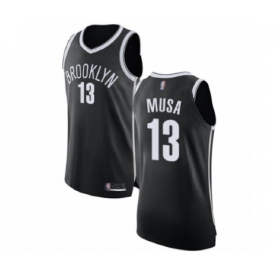 >Men's Brooklyn Nets #13 Dzanan Musa Authentic Black Basketball Jersey - Icon Edition