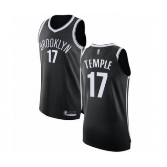 >Men's Brooklyn Nets #17 Garrett Temple Authentic Black Basketball Jersey - Icon Edition