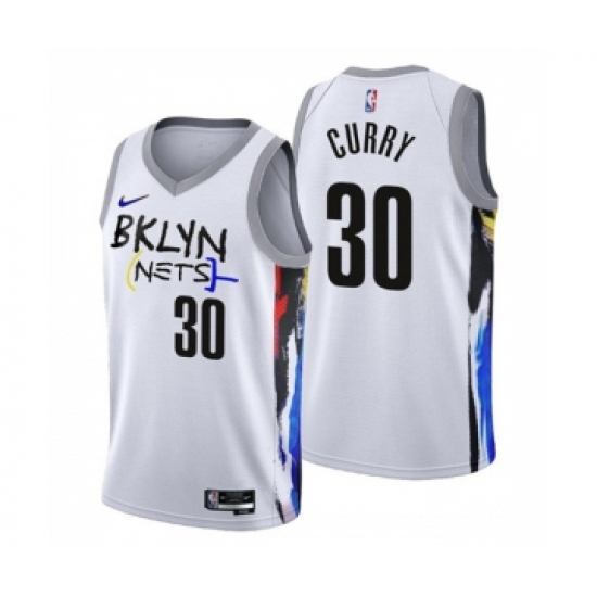 >Men's Brooklyn Nets #30 Seth Curry 2022-23 White City Edition Stitched Basketball Jersey