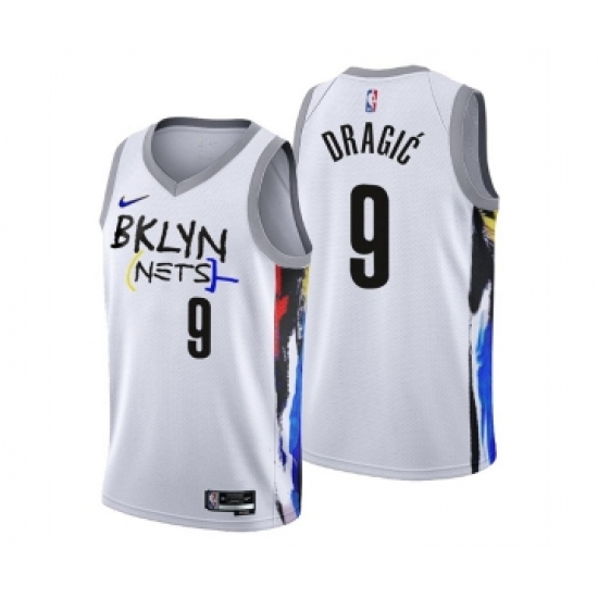 >Men's Brooklyn Nets #9 Goran Dragic 2022-23 White City Edition Stitched Basketball Jersey