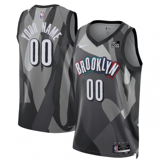 Men's Brooklyn Nets Active Player Custom Gray 2024-25 City Edition Stitched Basketball Jersey
