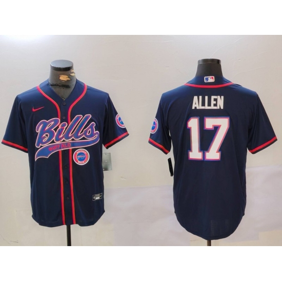 Men's Buffalo Bills #17 Josh Allen Navy Team Cool Base Stitched Baseball Jersey