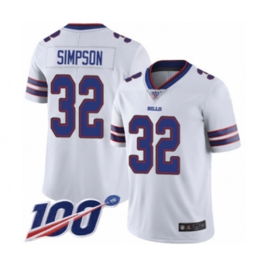 >Men's Buffalo Bills #32 O. J. Simpson White Vapor Untouchable Limited Player 100th Season Football Jersey