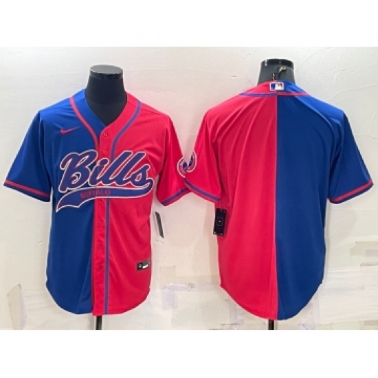 Men's Buffalo Bills Blank Royal Red Split With Patch Cool Base Stitched Baseball Jersey