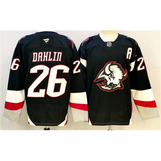 >Men's Buffalo Sabres #26 Rasmus Dahlin Black 2024-25 Alternate With A Stitched Jersey