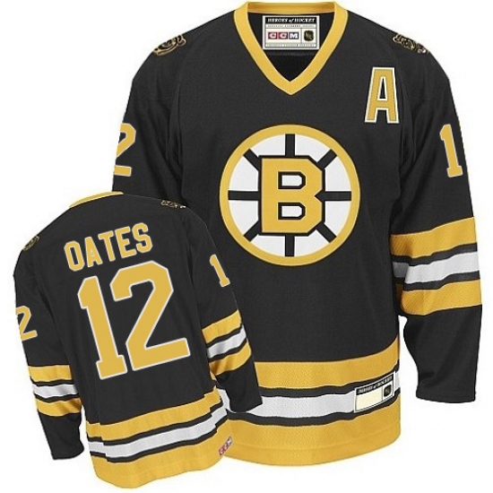 Men's CCM Boston Bruins #12 Adam Oates Authentic Black/Gold Throwback NHL Jersey