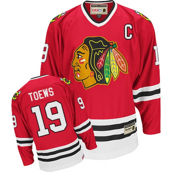 Men's CCM Chicago Blackhawks #19 Jonathan Toews Authentic Red Throwback NHL Jersey
