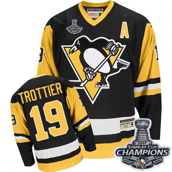 Men's CCM Pittsburgh Penguins #19 Bryan Trottier Premier Black Throwback 2017 Stanley Cup Champions NHL Jersey