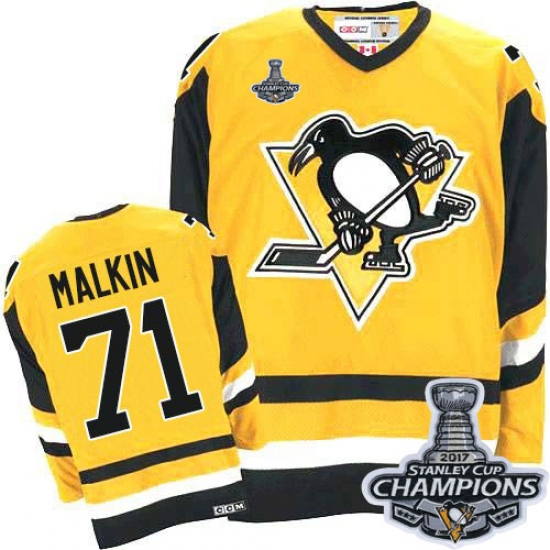 Men's CCM Pittsburgh Penguins #71 Evgeni Malkin Authentic Gold Throwback 2017 Stanley Cup Champions NHL Jersey