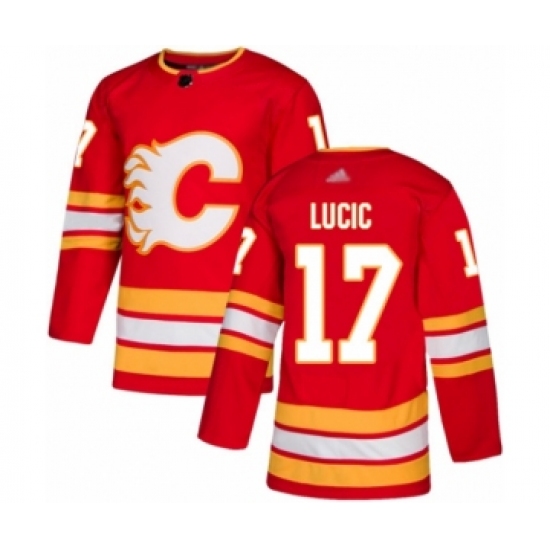 Men's Calgary Flames #17 Milan Lucic Authentic Red Alternate Hockey Jersey