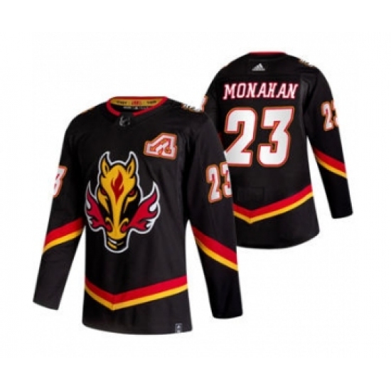 Men's Calgary Flames #23 Sean Monahan Black 2020-21 Reverse Retro Alternate Hockey Jersey