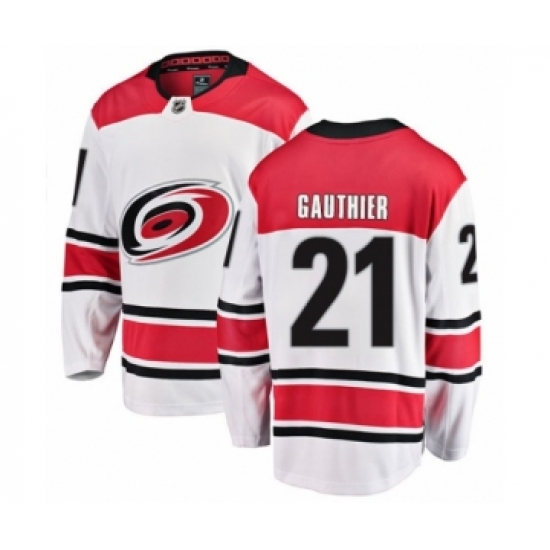 Men's Carolina Hurricanes #21 Julien Gauthier Authentic White Away Fanatics Branded Breakaway NHL Jersey