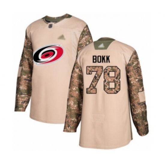 >Men's Carolina Hurricanes #78 Dominik Bokk Authentic Camo Veterans Day Practice Hockey Jersey