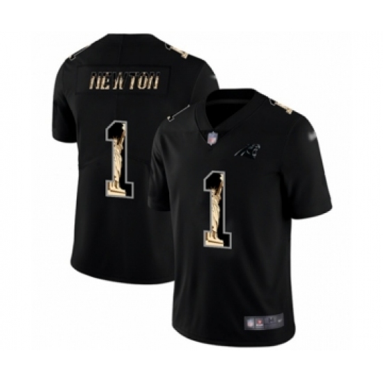 Men's Carolina Panthers #1 Cam Newton Limited Black Statue of Liberty Football Jersey