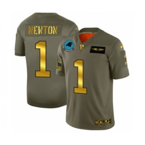 Men's Carolina Panthers #1 Cam Newton Limited Olive Gold 2019 Salute to Service Football Jersey
