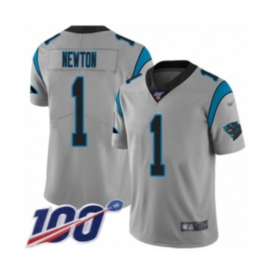 Men's Carolina Panthers #1 Cam Newton Silver Inverted Legend Limited 100th Season Football Jersey