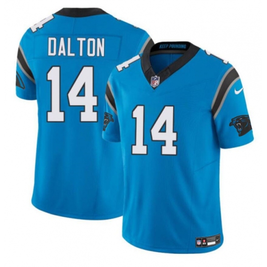 >Men's Carolina Panthers #14 Andy Dalton Blue 2024 F.U.S.E. Vapor Limited Stitched Football Jersey