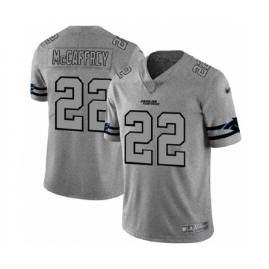 Men's Carolina Panthers #22 Christian McCaffrey Limited Gray Team Logo Gridiron Football Jersey