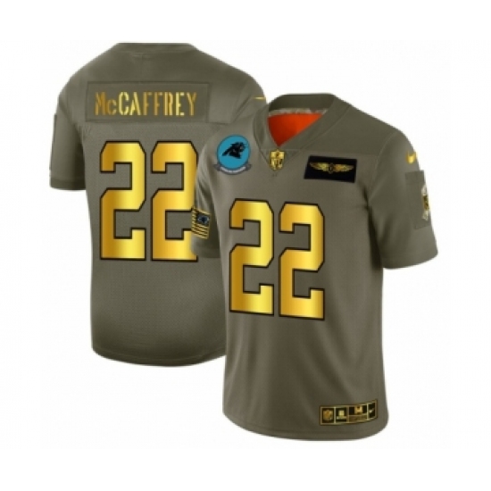 Men's Carolina Panthers #22 Christian McCaffrey Limited Olive Gold 2019 Salute to Service Football Jersey