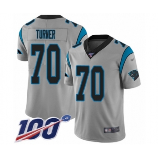 Men's Carolina Panthers #70 Trai Turner Silver Inverted Legend Limited 100th Season Football Jersey