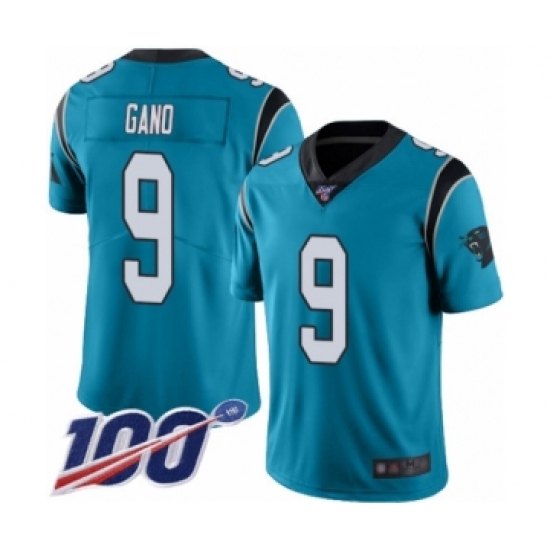 >Men's Carolina Panthers #9 Graham Gano Blue Alternate Vapor Untouchable Limited Player 100th Season Football Jersey