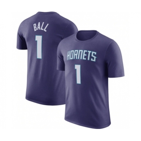 >Men's Charlotte Hornets #1 LaMelo Ball Purple 2022-23 Statement Edition Name & Number T-Shirt