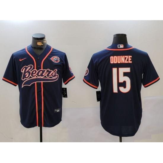 Men's Chicago Bears #15 Rome Odunze Navy Throwback With Cool Base Stitched Baseball Jersey