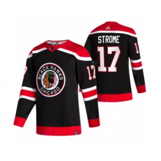 >Men's Chicago Blackhawks #17 Dylan Strome Black 2020-21 Reverse Retro Alternate Hockey Jersey