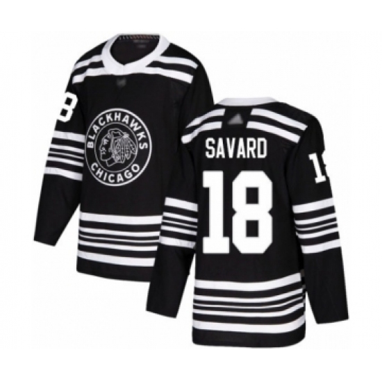 Men's Adidas Chicago Blackhawks #18 Denis Savard Authentic Black 1917-2017 100th Anniversary NHL Jersey