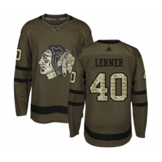 >Men's Chicago Blackhawks #40 Robin Lehner Authentic Green Salute to Service Hockey Jersey