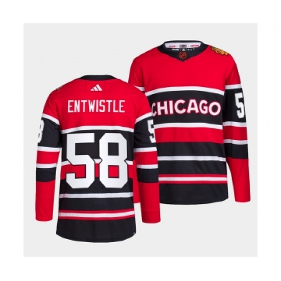 >Men's Chicago Blackhawks #58 MacKenzie Entwistle Red Black 2022 Reverse Retro Stitched Jersey