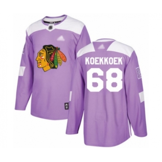 >Men's Chicago Blackhawks #68 Slater Koekkoek Authentic Purple Fights Cancer Practice Hockey Jersey