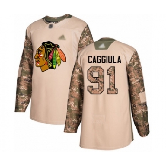 Men's Chicago Blackhawks #91 Drake Caggiula Authentic Camo Veterans Day Practice Hockey Jersey