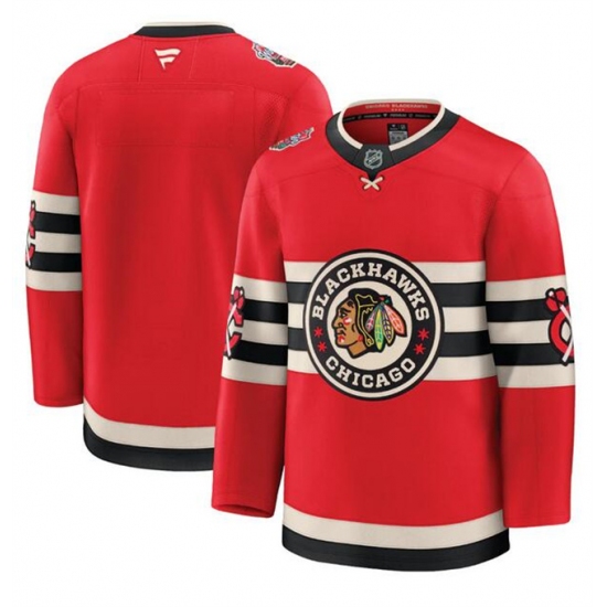 Men's Chicago Blackhawks Blank Red 2024-25 Winter Classic Stitched Hockey Jersey
