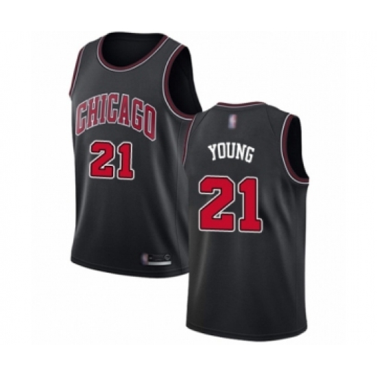 >Men's Chicago Bulls #21 Thaddeus Young Authentic Black Basketball Jersey Statement Edition