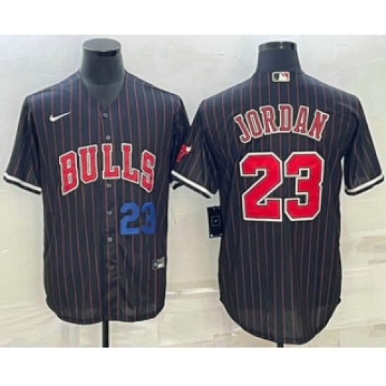 Men's Chicago Bulls #45 Michael Jordan Black Pinstripe Cool Base Stitched Baseball Jerseys