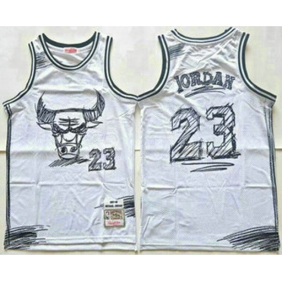 Men's Chicago Bulls #23 Michael Jordan White Sketch Swingman Jersey
