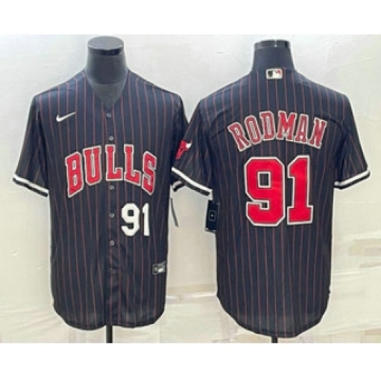 >Men's Chicago Bulls #91 Dennis Rodman Number Black With Cool Base Stitched Baseball Jerseys