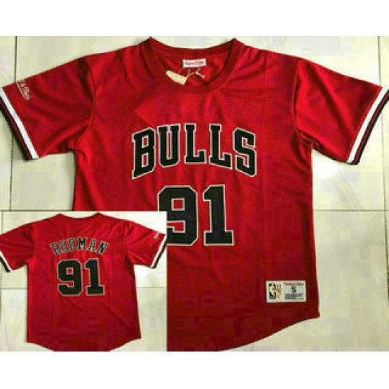 >Men's Chicago Bulls #91 Dennis Rodman Red Short Sleeved AU Throwback Jersey