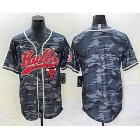 >Men's Chicago Bulls Blank Black Camo Cool Base Stitched Baseball Jersey