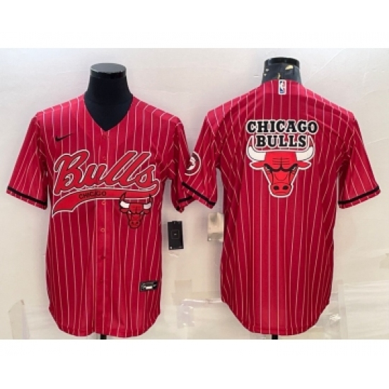Men's Chicago Bulls Blank Red Pinstripe Team Big Logo With Patch Cool Base Stitched Baseball Jersey