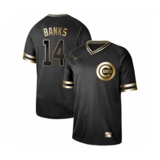 >Men's Chicago Cubs #14 Ernie Banks Authentic Black Gold Fashion Baseball Jersey