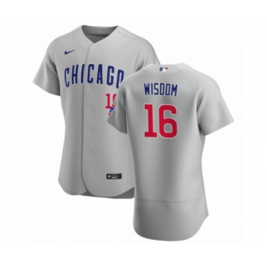 >Men's Chicago Cubs #16 Patrick Wisdom Gray Flex Base Stitched Jersey