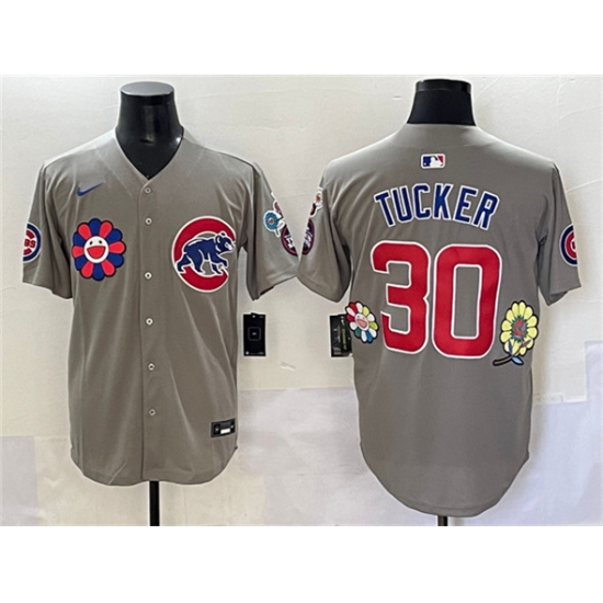 >Men's Chicago Cubs #30 Kyle Tucker Gray 2025 Tokyo Series Limited Stitched Baseball Jersey